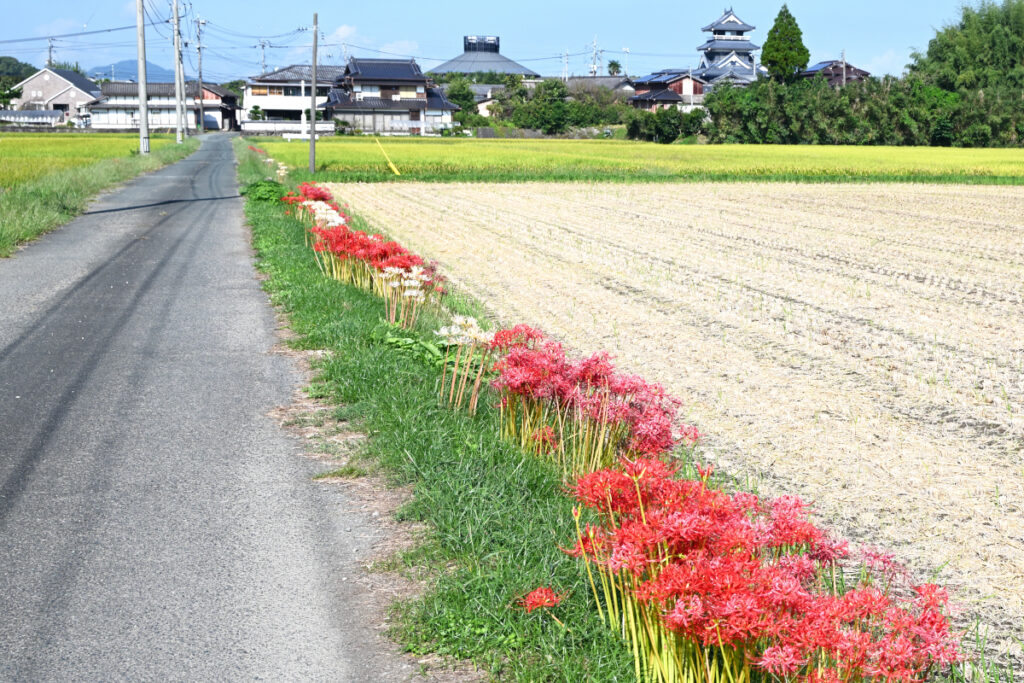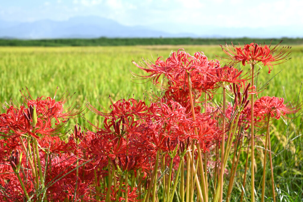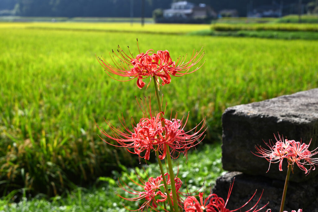 稲が実ってきて、もう刈り入れ時期まじか、それと彼岸花の競演