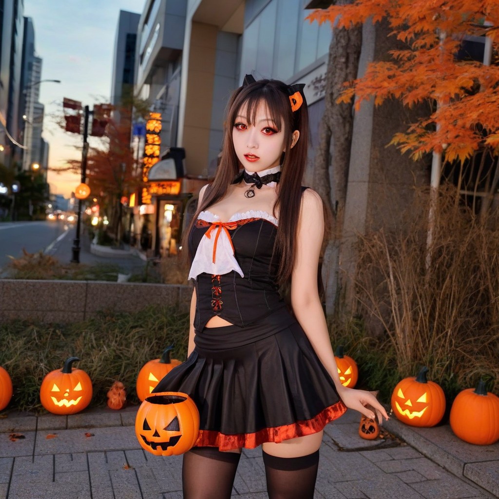10月ということで、お決まりのハロウィーンのコスプレを描かせてみた。